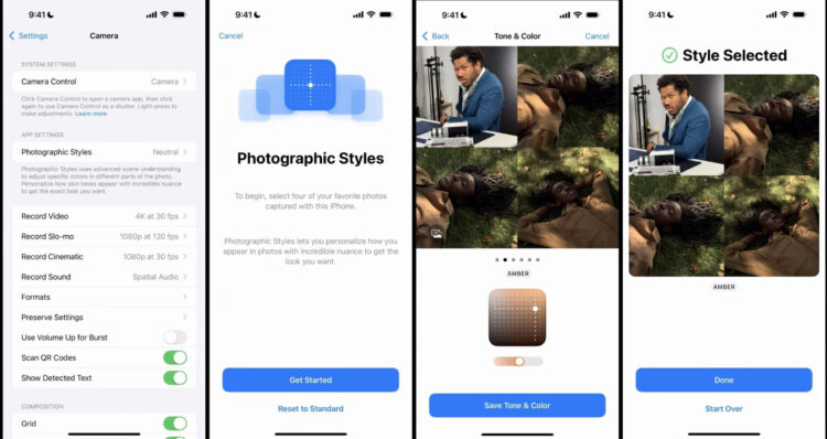 Open Settings, go to Camera, and then Photographic Styles. That gives you a chance to learn about it for the first time if you haven’t explored it yet. Here we’ll choose some images as reference to set a base style we can use in-camera.